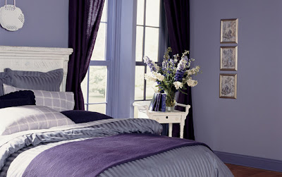 Stately, elegant, refined. This Winter Amethyst color brings it all to your bedroom. Highlighted brilliantly by a white headboard and furnishings, this bedroom achieves an unexpected warmth and stateliness.